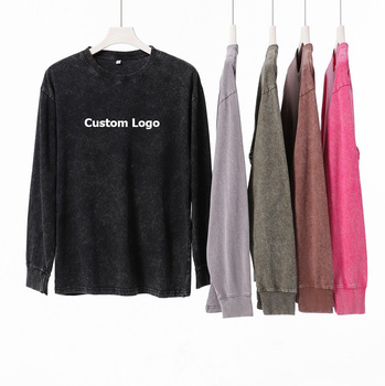 230 grammes 100% coton hommes lavé Vintage rétro T-shirts à manches longues