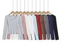 เสื้อยืดคอกลมแขนยาวทรงสลิมฟิตสีพื้นเอวนาฬิกาทรายเซ็กซี่สำหรับผู้หญิงปรับแต่งได้ตามต้องการ