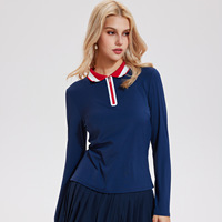 المرأة الجديدة الرطوبة فتل طويلة الأكمام تنس الريشة تيشيرت تنس تناسب ضئيلة طوق التباين لصالة الألعاب الرياضية والرياضة