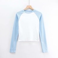 T-shirt à manches longues style Preppy personnalisé pour femmes manches raglan bloc de couleur extensible col rond haut avec plusieurs couleurs