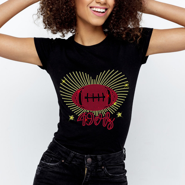 พลอยเทียมรูปหัวใจแบบรีดติดพลอยเทียมรูปหัวใจสำหรับทีมฟุตบอล49ers ของคุณเอง